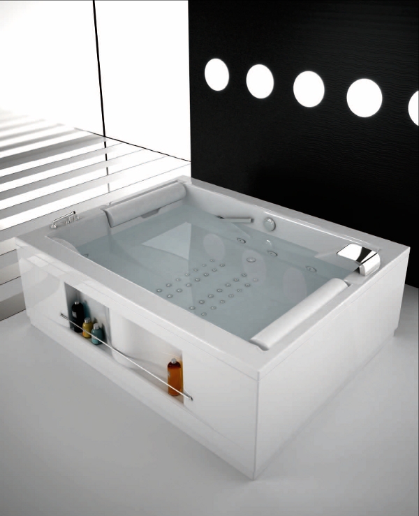 Ακρυλική μπανιέρα 2 ατόμων σε ιδιαίτερα μοντέρνο σχεδιασμό.Διατίθεται σε λευκό χρώμα , απλή ή εξοπλισμένη με ειδικό σύστημα υδρομασάζ-αερομασάζ.