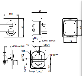 Ενσωματωμένο θερμοστατικό ντους 2 δρόμων με κουτί.