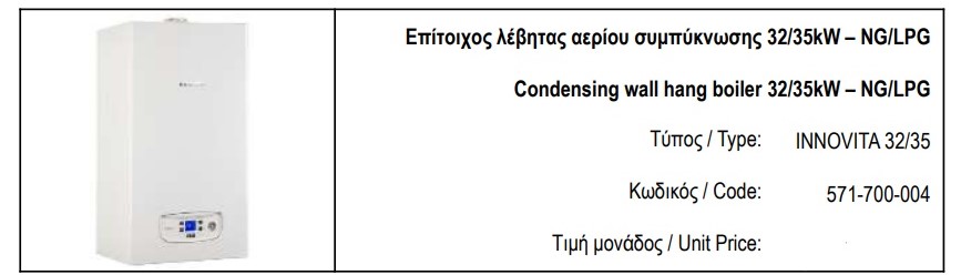 Επίτοιχος λέβητας αερίου συμπύκνωσης 32/35kW – NG/LPG
