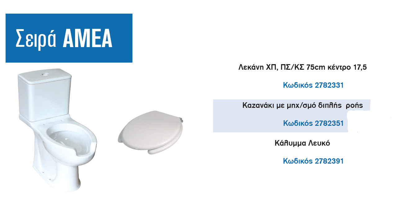 Λεκάνη ΧΠ, ΠΣ/ΚΣ 75cm κέντρο 17,5 με καζανάκι με μηχ/σμό διπλής ροής Κωδικός 2782351 Κωδικός 2782331 (697 ΕΥΡΩ)