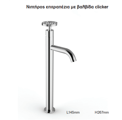 Μπαταρία Νιπτήρος επιτραπέζια με βαλβίδα clicker