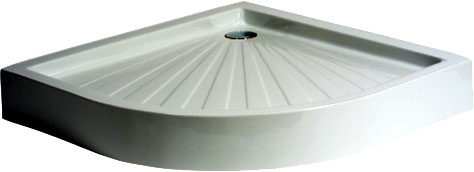 Κυκλικές ακρυλικές ντουζίερες με στήριξη και εφοδιασμένες με βαλβίδα αποχέτευσης.