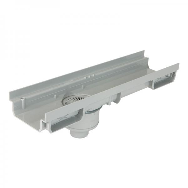 Κανάλι χαμηλού ύψους από PVC με ενσωματωμένο σιφώνι Φ50, με υπερυψωμένα πλαϊνα φύλλα υποδοχής σχάρας PVC (ΕΛΑΧΙΣΤΗ ΠΑΡΑΓΓΕΛΙΑ 12τμχ)