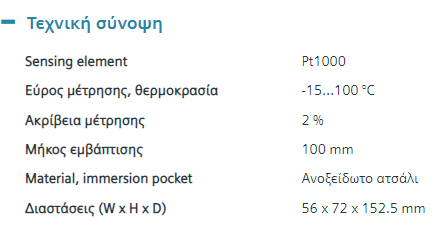 QAE1612.010 Αισθητήρας θερμοκρασίας βύθισης