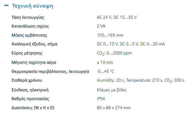 Το αισθητήριο ποιότητας αέρα αεραγωγού έχει επιλογή του αισθητηρίου αντίστασης θερμοκρασίας, και παραδίδονται μαζί του αισθητήρια τύπου LG-Ni1000, Pt1000, Pt100, NTC 10kOhm