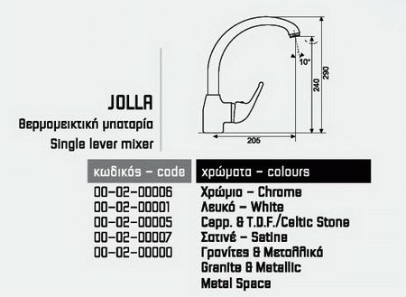 Μπαταρία Κουζίνας Sanitec Jolla Χρώμιο 00-02-00006